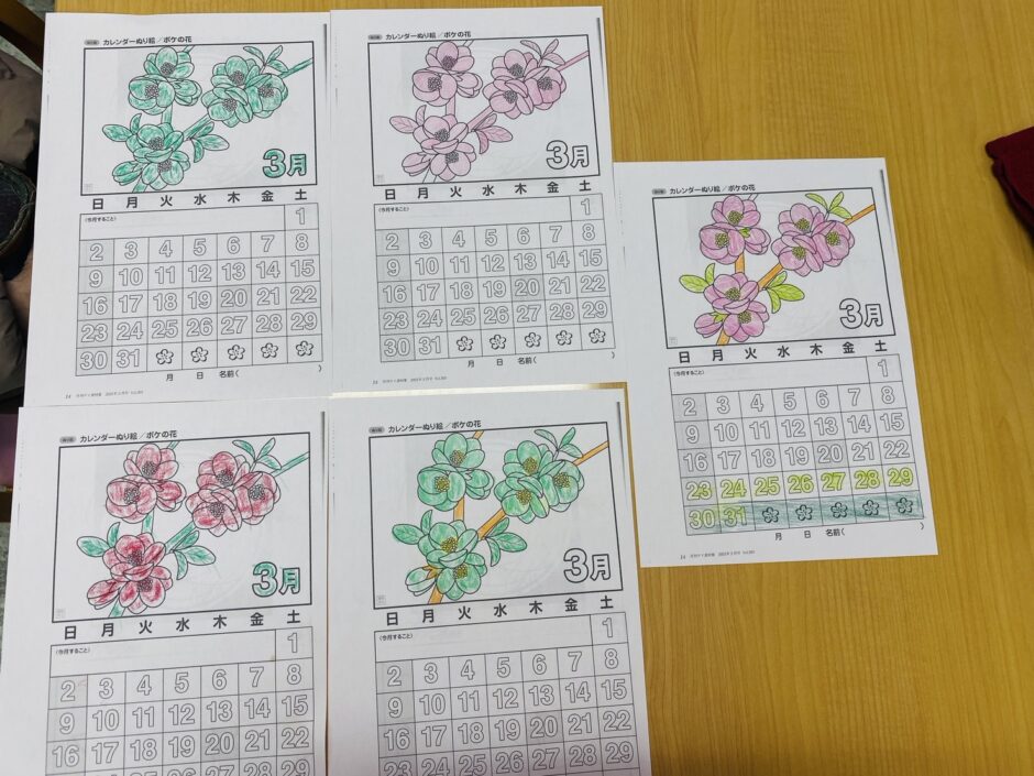 🌸今日のレクリエーションは、カレンダーの塗り絵でした🌸